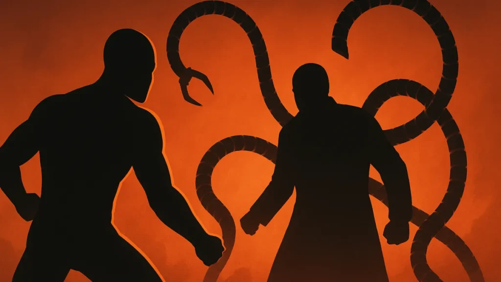 Em Homem-Aranha 2: Tobey Maguire e Octopus em Batalha Épica!, a luta entre Peter Parker e Otto Octavius é mais que ação: é conflito emocional e físico ao mesmo tempo.